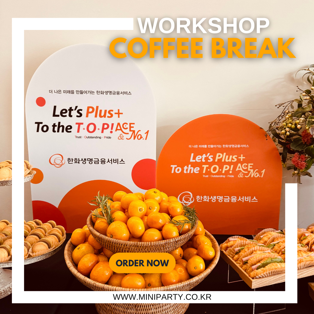 # 커피 브레이크는 커피만 좋으면 될까? 한화생명금융서비스 임원 워크숍 커피브레이크 케이터링을 진행했습니다. 이전에는 행사장 근처의 케이터링업체에서 일반적인 커피케이터링을 진행했다고 합니다만, 이번에는 저희는 찾아주셨습니다. 임원들의 커피브레이크는 뭐가 달라야 할까요? # 새로운 슬로건을 제대로 반영하는 것이 가장 중요!!! 1년의 새로운 목표를 설정하고, 이를 반영한 새로운 슬로건이 나오는 시점이라, 이 NEW 슬로건이 제대로 커피브레이크 및 케이터링에도 잘 적용하는 것이 무엇보다 중요합니다. 이를 위해 마지막까지 인쇄를 홀드 시킨 경험은 기업케이터링을 안 해본 사람은 모를 겁니다. # 임원들은 메뉴의 다양성 보다는 퀄리티에 집중이번 임원들의 워크샵을 진행하는 가장 큰 이우는 이분들이 이번에 다..
