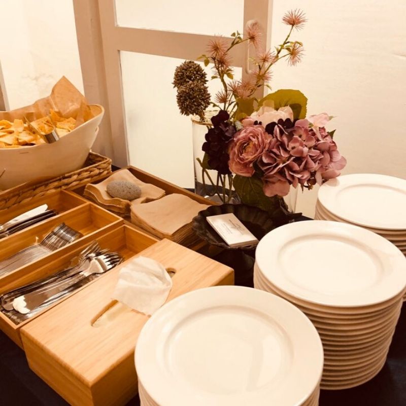 3층에 케이터링뷔페 테이블을 세팅하여