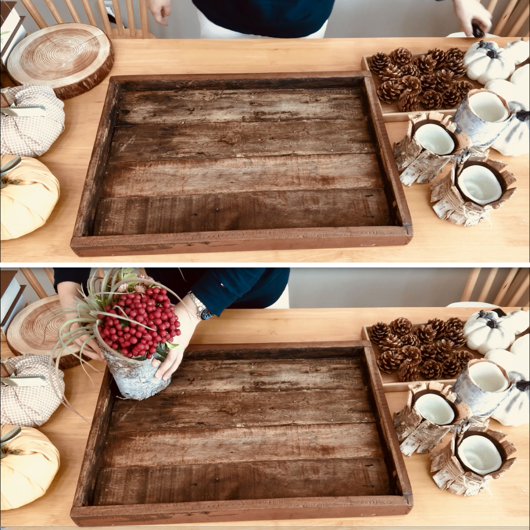 일단 통나무이용한 조화센터피스를 놓고