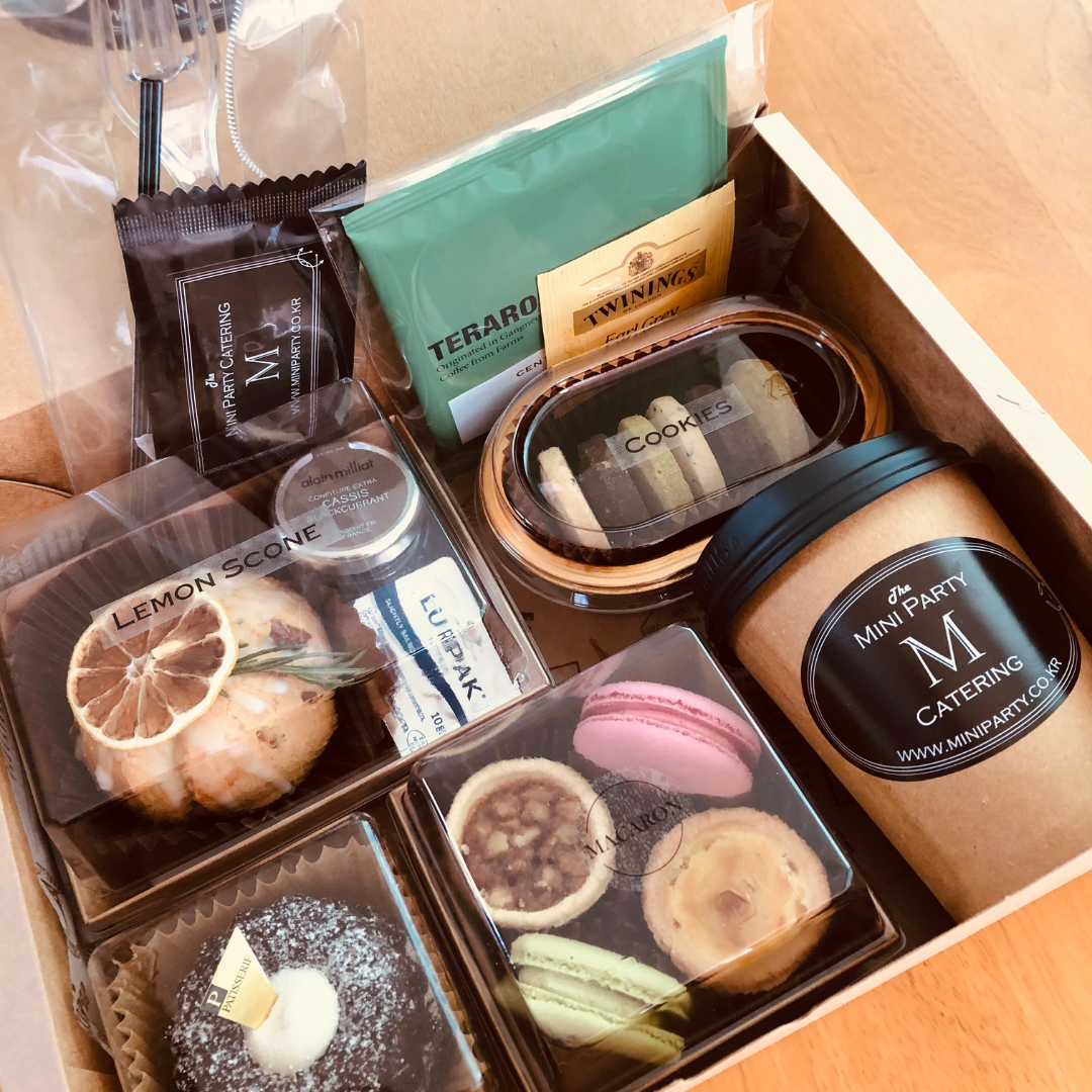 Covid-19 때문에 생긴 새로운 세상이 우리 캐이터링업체에도 강력한 변화를 가져왔습니다. 행사의 타입도 많은 변화를 가지고 왔어요. 이전과는 완전히 다른 세상이죠. 이전 맥주 안주 KIT의 노하우를 가득 담아, 이번 디저트 박스도 함께 택배로 받을 수 있도록 준비했습니다. 커피와 차, 그리고 함께 어울리는 디저트들을 종류별로 넣어, 지루하지 않도록 만들어 보았습니다. 물론, 원하시는 대로 구성은 언제든지 변화를 줄 수 있지요.
