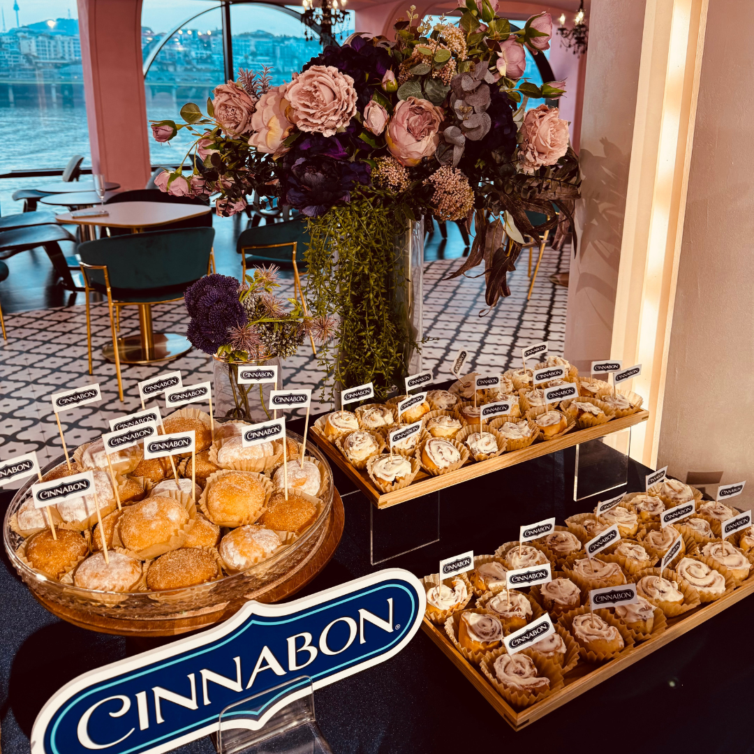 시나본의 대표 메뉴인 '시나본 롤’과 ‘시나본 도넛’을 디저트로 활용했습니다. 브랜드 아이덴티티를 자연스럽게 녹여내기 위해, 단맛이 강한 메뉴는 최소화하고, 짠맛과 식사 대용이 가능한 메뉴로 밸런스를 맞췄습니다. 현장판매되는 맥주와 와인까지 제공하여, 보는 것에서 ‘즐기는 이벤트’로 확장된 케이터링 경험을 선보였습니다.