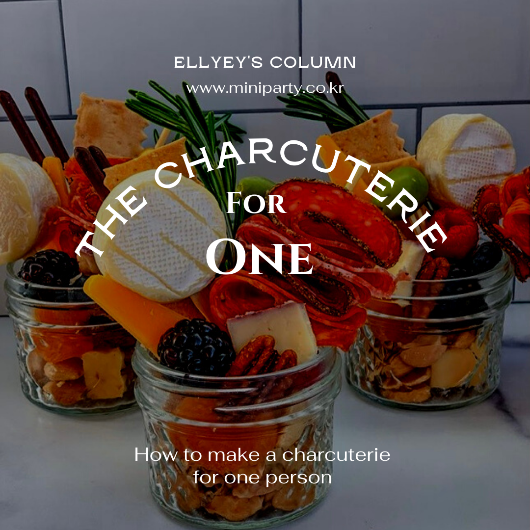 특히 연초부터 설까지 많은 사람들과 어울려 친목도모와 새로운 출발을 기념하는 행사, 축하하는 자리는 아무래도 화려함이 무엇보다 중요합니다. 연말행사처럼 부담스럽지 않으면서 깔끔하게 샴페인, 와인 한잔하고 싶다면 1인용 샤퀴테리를 준비하세요. 한국에서는 생소한 메뉴라서 아직까지는 대중적이지 않지만, 한번 세팅해 놓으면 모두들 멋지다고 칭찬할 겁니다. 게다가 1가지만으로 이것저것 따로 할 것이 없어 행사준비도 간편합니다.