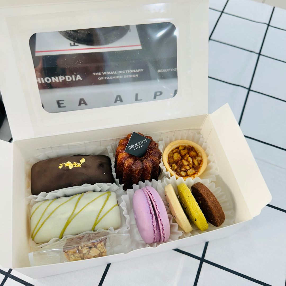 | 메뉴 A | 피낭시에(녹차, 초코), 마카롱, 까눌레, 미니호두타르트, 단백질 바, 수제쿠키(참깨,녹차, 초코) |