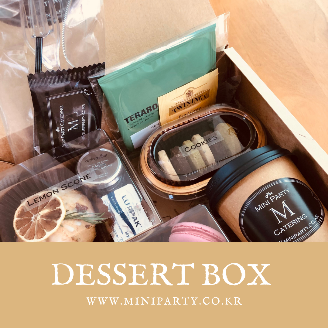 Covid-19 때문에 생긴 새로운 세상이 우리 캐이터링업체에도 강력한 변화를 가져왔습니다. 행사의 타입도 많은 변화를 가지고 왔어요. 이전과는 완전히 다른 세상이죠. 이전 맥주 안주 KIT의 노하우를 가득 담아, 이번 디저트 박스도 함께 택배로 받을 수 있도록 준비했습니다. 커피와 차, 그리고 함께 어울리는 디저트들을 종류별로 넣어, 지루하지 않도록 만들어 보았습니다. 물론, 원하시는 대로 구성은 언제든지 변화를 줄 수 있지요.